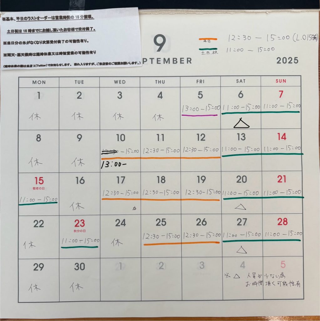 ※営業予定日の雨天悪天候時・・・臨時休業や時短営業の場合はXにて基本前日までにお知らせします。恐れ入りますが最新の情報のご確認をお願いします。
